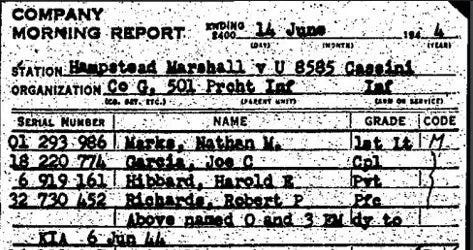 Nathan enlisted in the U.S. Army at Los Angeles, California, on March 3, 1941, and was assigned to the 501st PIR.