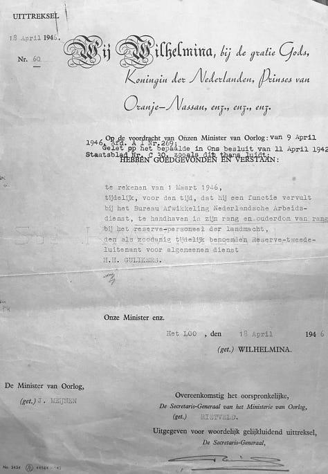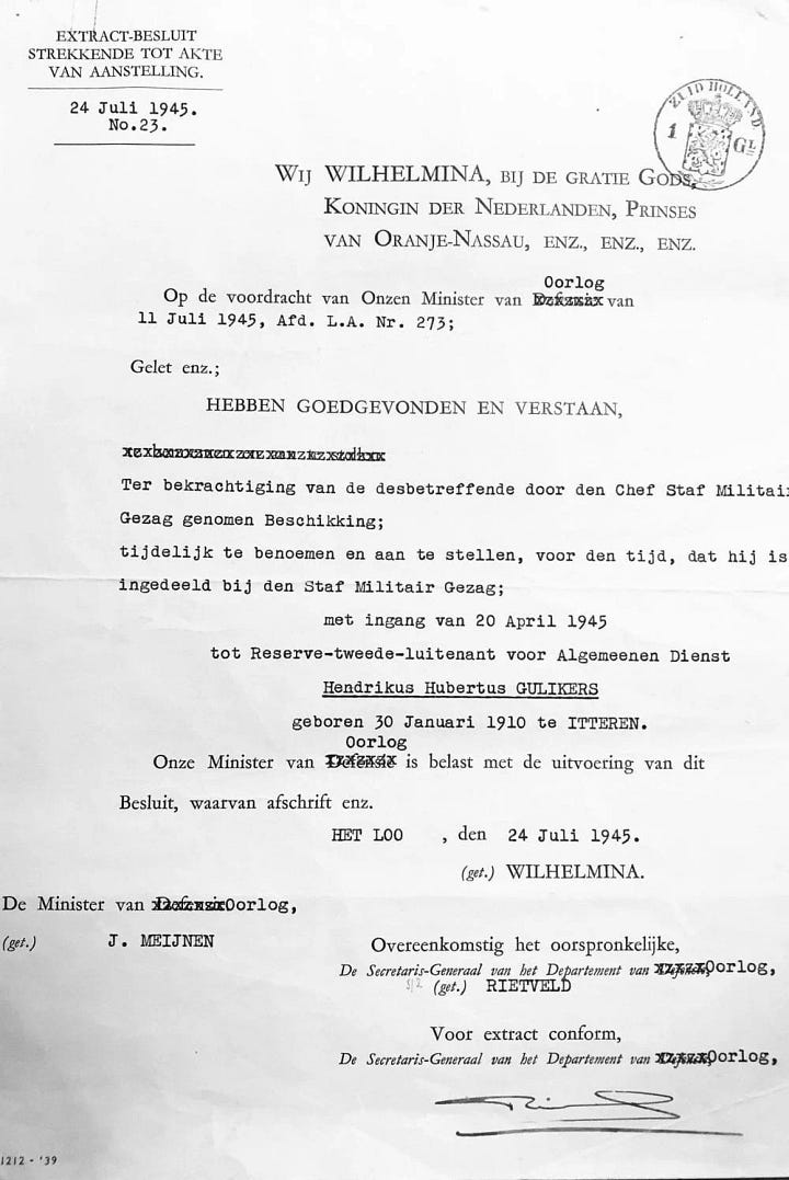 Hendrik Hubertus Gulikers began his service in the Royal Netherlands Army on 20 March 1930 at the age of 20. He spent many years in the military, rising to the rank of Lieutenant before the war began.