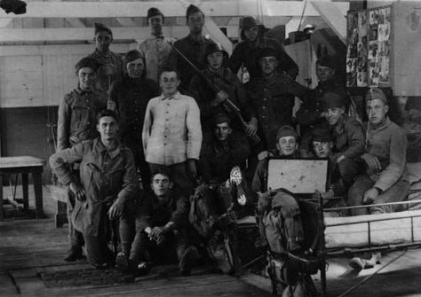 One of the scariest moments, however, was when Uncle Peter, age four, managed to pick up a fully loaded machine gun from a soldier’s bunk and started pointing it at people with his finger on the trigger. He also wanted to be a soldier.