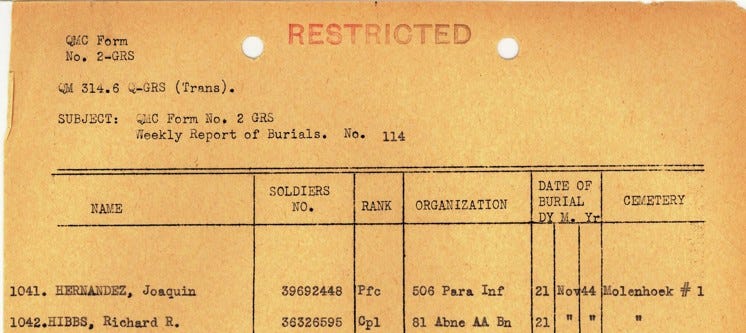 We honor and remember CPL Richard Randolph Hibbs of Easy Battery, 81st Airborne Anti-Aircraft Battalion, 101st Airborne Division.