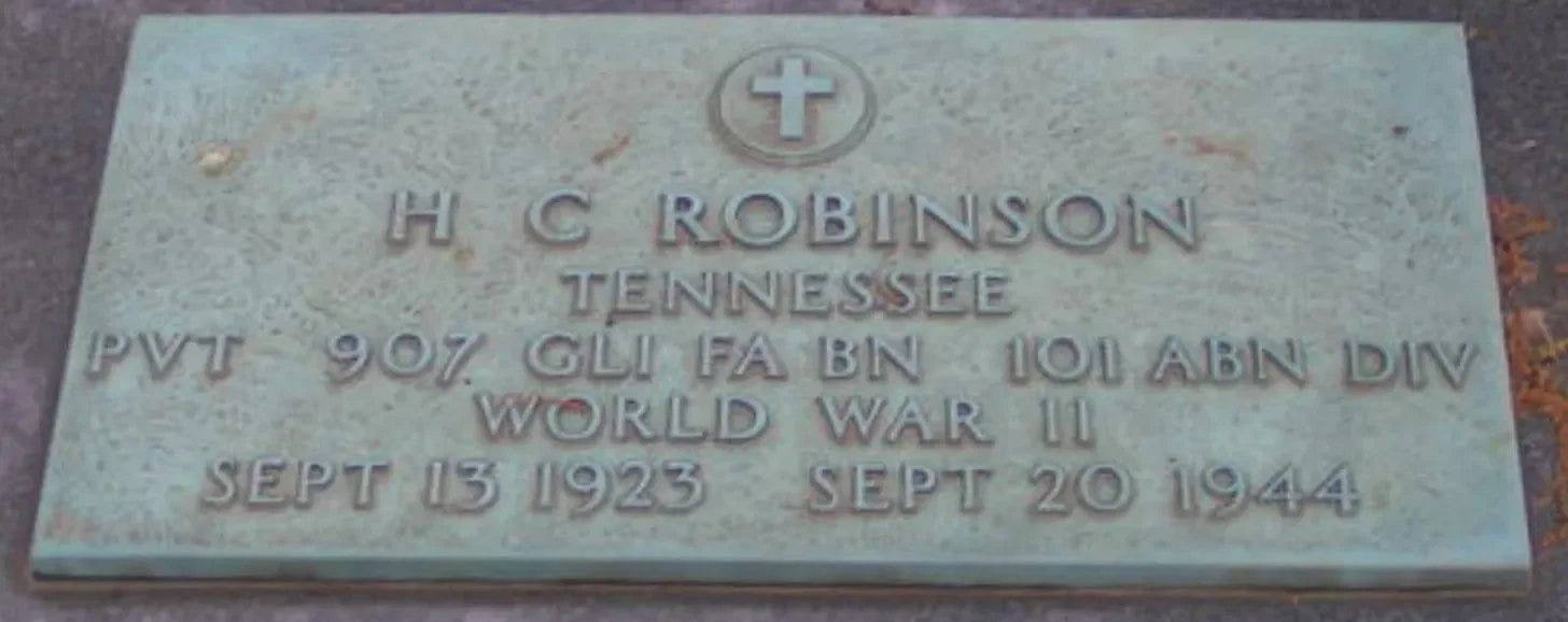 We honor and remember PFC H. C. Robinson of Baker Battery, 907th GFAB, 101st Airborne Division.