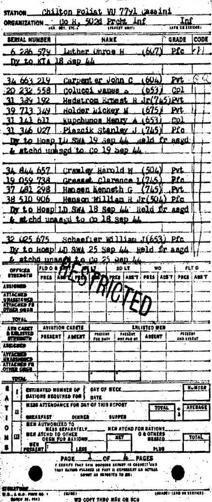 The Morning Reports of How Company doesn’t mention his promotion to Private First Class, but he made his second combat jump into the Netherlands on September 17, 1944, with his recently acquired chevron probably attached to his sleeve.