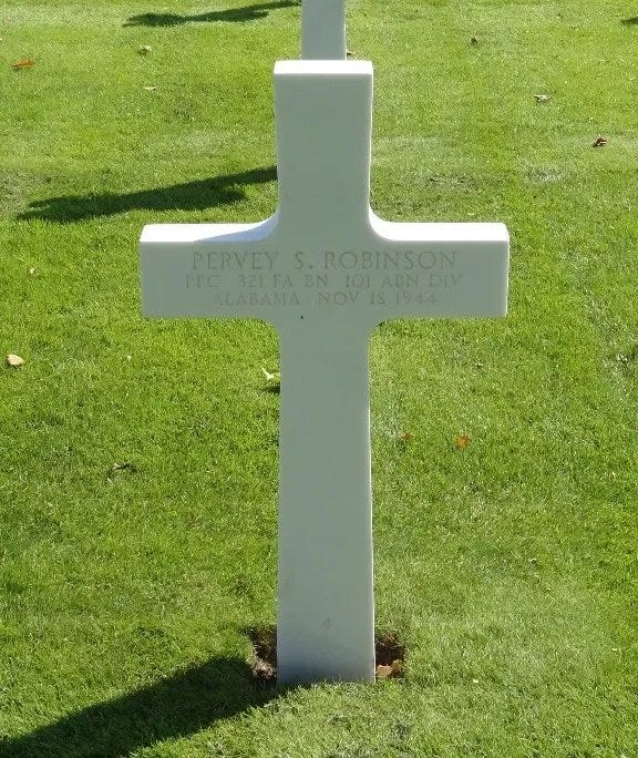 We honor and remember PFC Pervey Silas Robinson of Baker Battery, 321st GFAB, 101st Airborne Division.