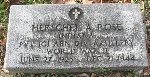 We honor and remember PVT Herschel Albert Rose of the 101st Headquarters Company, 101st Airborne Division.