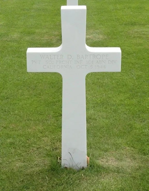We honor and remember PVT Walter Donald Bartrope of HQ Company, 1st Battalion, 501st PIR, 101st Airborne Division.