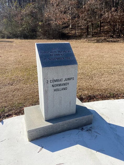 I was excited and proud to stand in the place where several of the WWII Paratroopers I have known completed the toughest training of their lives. Yet I was also grief-stricken as I thought about the men who never survived the war or those friends who had recently made their final jump in life. 🦅